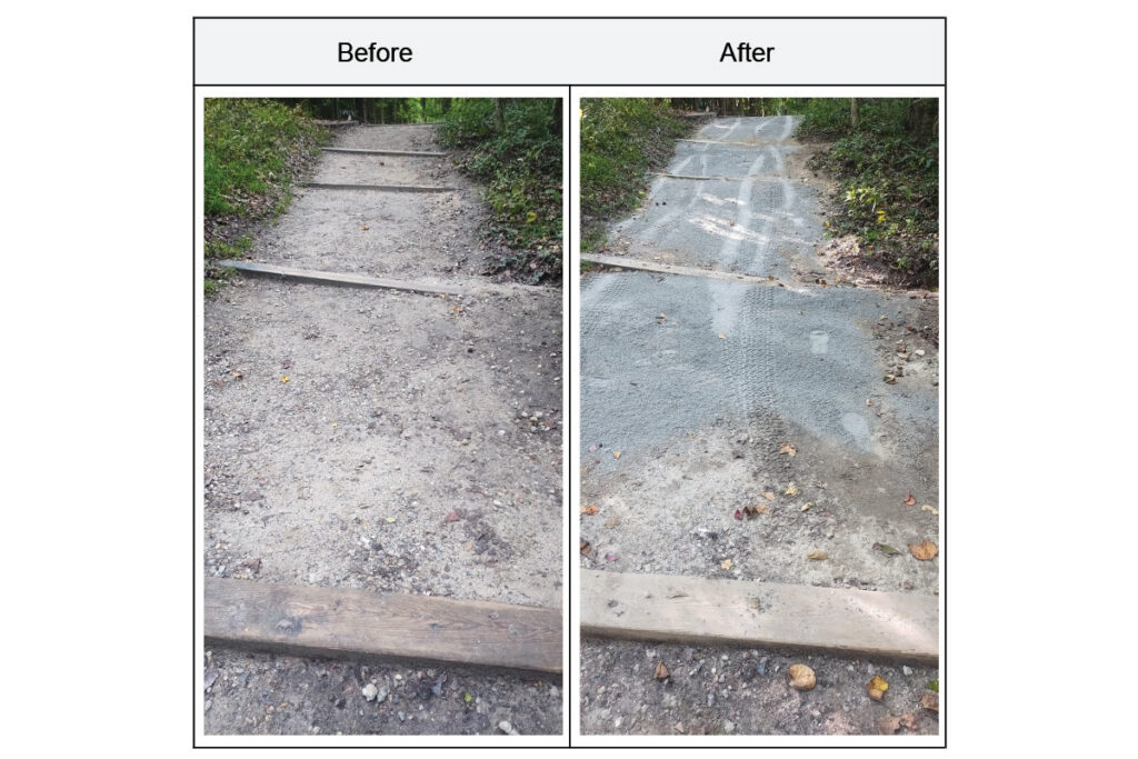Starting 2026 strong, the team resurfaced one of the roughest sections of the Meadow Path, covering exposed gravel with clay and stone dust to create a safer, more pleasant walking surface. This represents about 8 percent of the mile 6 resurfacing plans for the year ahead!
