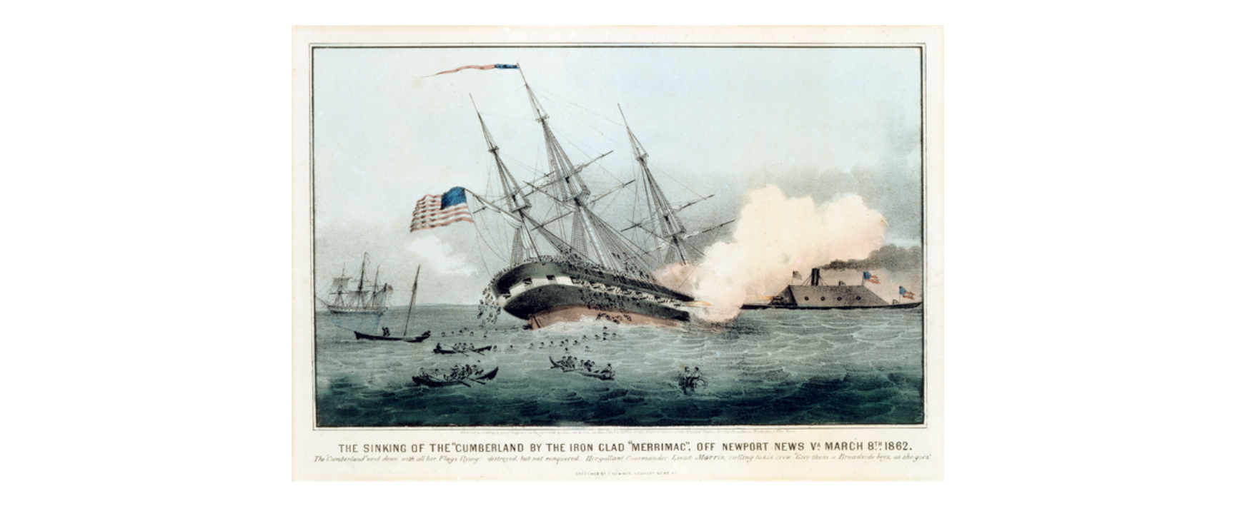 Image Credit: Sinking of Cumberland by Merrimack, March 8, 1862. Currier & Ives, lithographer. The Mariners’ Museum and Park. 1933.0460.000001.