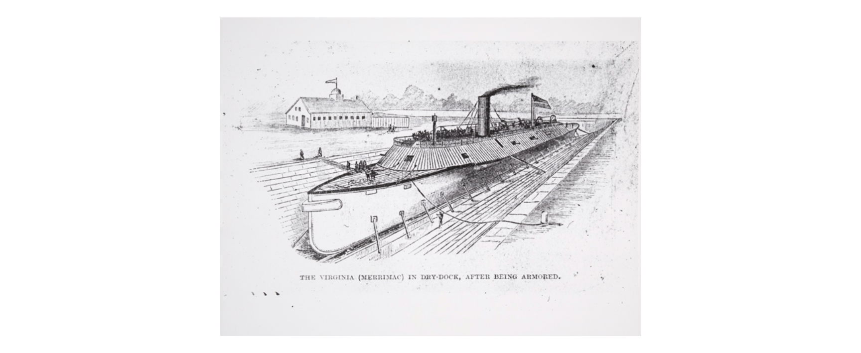 Image Credit: CSS Virginia in dry dock at Gosport Navy Yard. The Mariners’ Museum and Park. P0001.014/04-#PNc89.